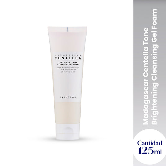 El gel limpiador facial SKIN1004 Madagascar Centella Tone Brightening Cleansing Gel Foam 125ml está formulado con extracto de Centella Asiática de Madagascar y Niacinamida, ofreciendo una limpieza profunda que elimina impurezas, exceso de grasa y maquillaje sin resecar la piel. Además, ayuda a unificar el tono, aportar frescura y mantener la barrera cutánea fortalecida, dejando el rostro más radiante y equilibrado.